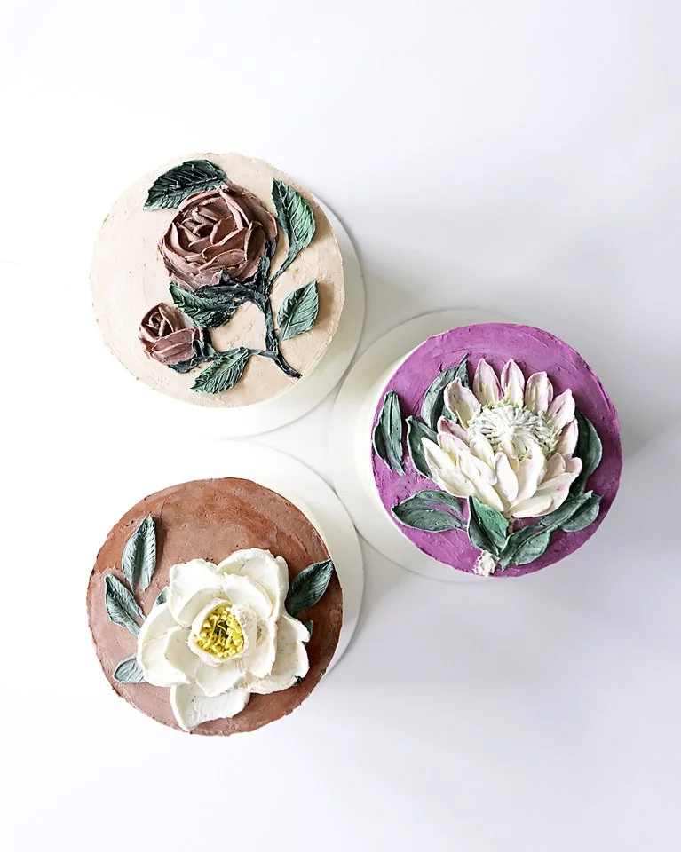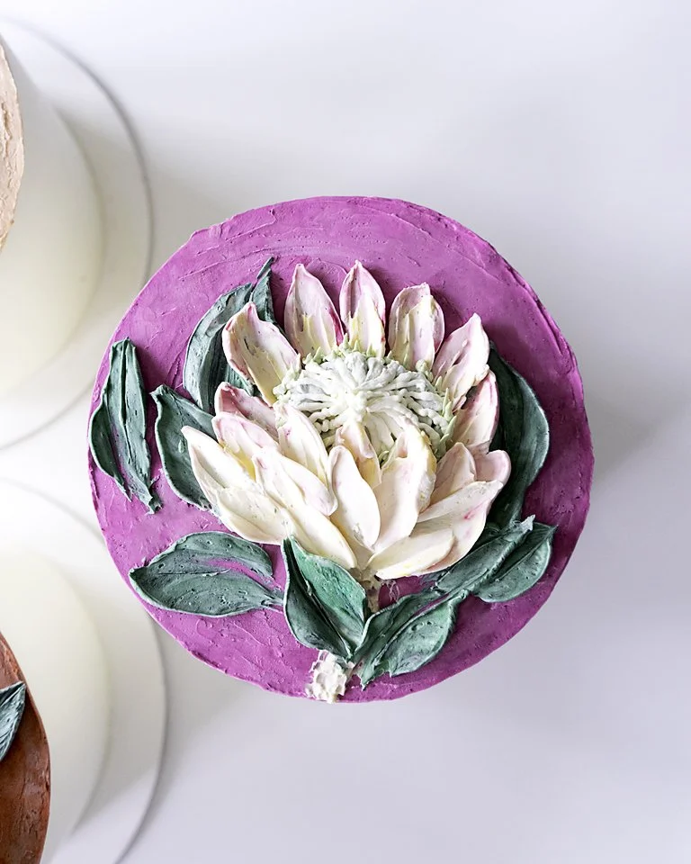 To fit the theme the cakes were various shades of pink, peach and red, and were all different flavors: Chocolate, Carrot and Almond. The cakes featured some of my favorite buttercream painted flowers: rose, peony and king protea. And yes, as you can see they arrived in perfect condition all the way from Charleston, SC to Reno, NV and a car ride from Reno to Napa, CA! I spy a little bit of crumb from some movement of the chocolate cake, which can be easily wiped away, but other than that I’m so thrilled with the results.